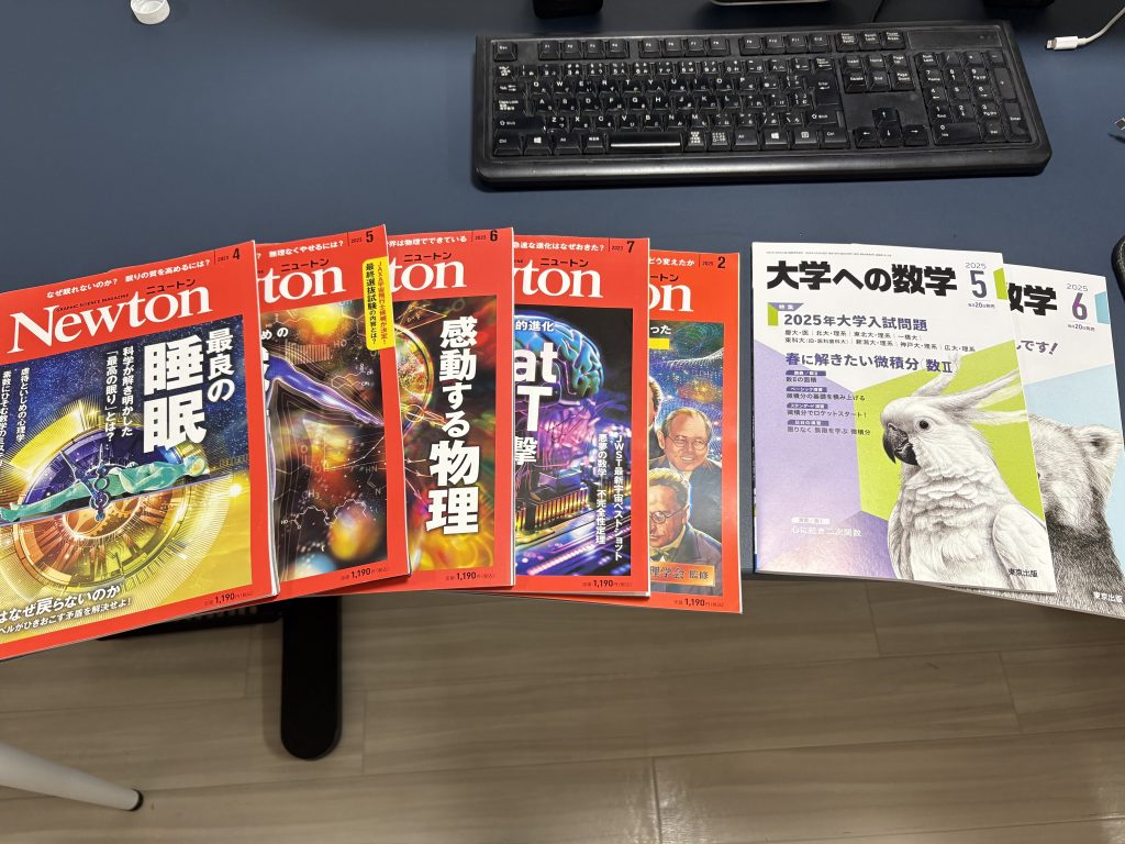 また今日は科学のすすめを書いておこうと思います。正直高校生のころから”科学”は好きだったのですが物理や地学に興味があり、”化学”は一番の苦手科目でした。。。今でも科学雑誌「ニュートン」は楽しそうな題材だと集めて最新の科学の現場では何が進んでいるのかなって思うことがあります。前の職場でも教室で生徒が興味を持ってくれればと置いていて、いろいろと質問してくる生徒との会話が楽しかったなぁ。